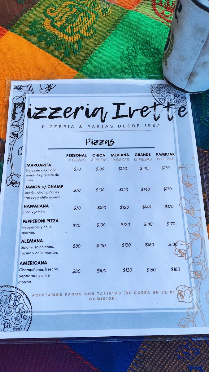 Pizzeria Ivette Menu